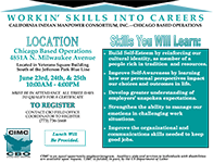 June 24-26, 2026 - CIMC Workin' Skills into Careers Location: Chicago, Illinois To register, contact CBO Field Office Coordinator at (773) 736-1668. Attendee must be in attendance all three days to qualify for a certificate. Lunch will be provided. |